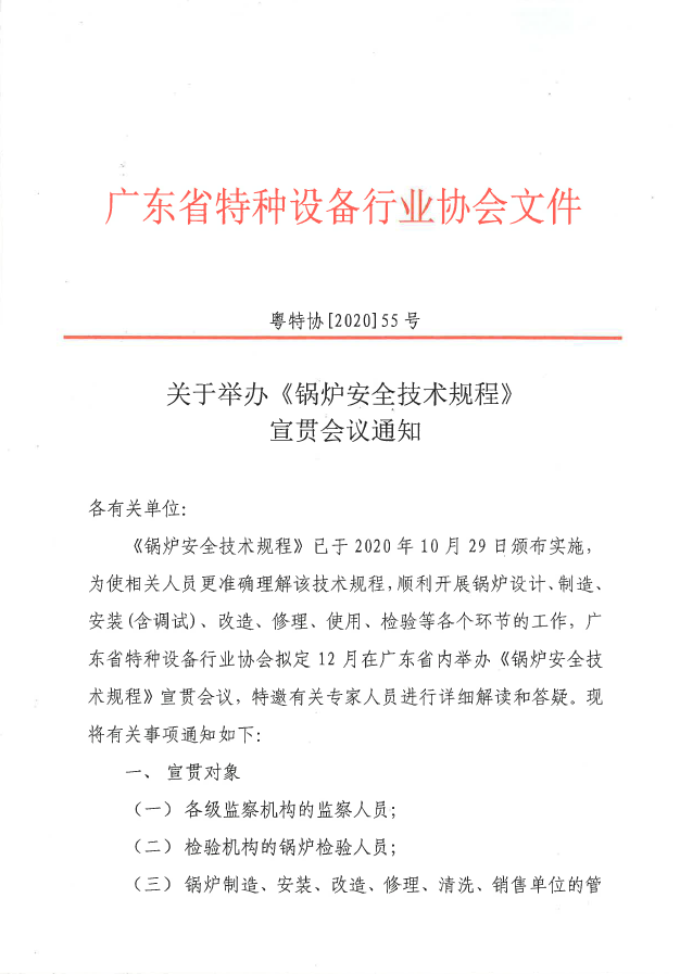 关于举办《锅炉安全技术规程》宣贯会议通知