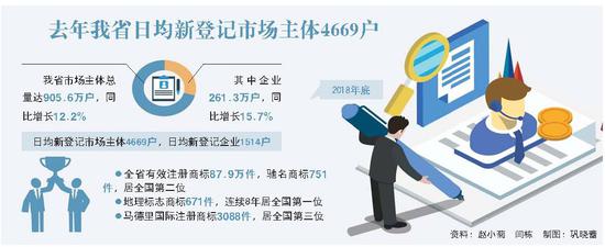 我省是市场主体大省,到2018年底,全省市场主体总量达905.6万户,居全国第三位。我省还是制造业大省、知识产权大省、国家标准化改革试点省,市场监管责任重大。2018年,我省开办企业环节从8个减少到5个、开办时间降至3个工作日,实行简化审批的16类工业产品取证时间压缩至平均3.4天,比国务院的要求压缩近2/3;“多证合一”改革实现“四十五证合一”。 在市场主体监管上,我省今年将完善信用监管机制,深化“公示即监管”理念,加强涉企信息归集共享,加大信息公开力度,探索信用风险分类监管,形成线上与线下、内部与外部相结合的风险评估、预警、监管机制;强化食品安全监管,在餐饮质量安全提升、农村市场食品安全治理、校园食品安全风险防控、开展“清洁厨房”行动等方面扎实推进“食安山东”建设;药品将坚持严字当头、实行全主体、全品种、全链条的严格监管,突出强化疫苗、血液制品、特殊药品、注射剂、植入类医疗器械等高风险产品监管,建立企业风险排查整改、药品不良反应和医疗器械不良事件直接报告等制度,实施最严处罚,加大惩罚性赔偿力度,压实企业主体责任;实行特种设备全过程、动态化、信息化管理,深入开展特种设备安全现场监督检查,从严排查治理安全隐患,顶格处理违法行为。
