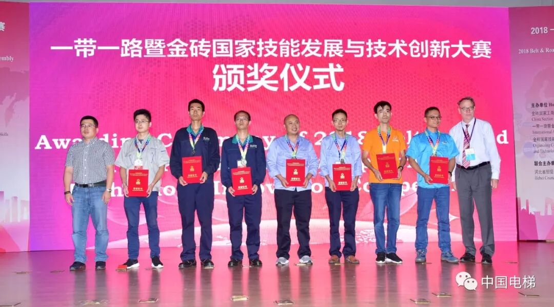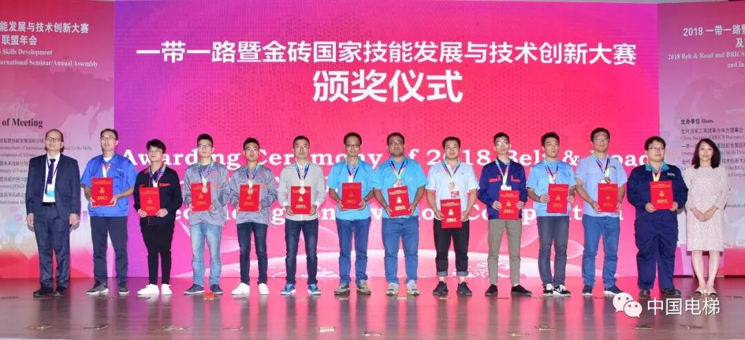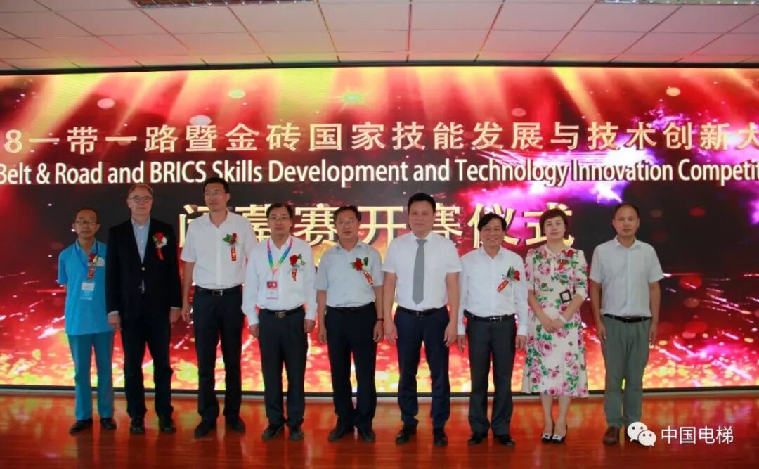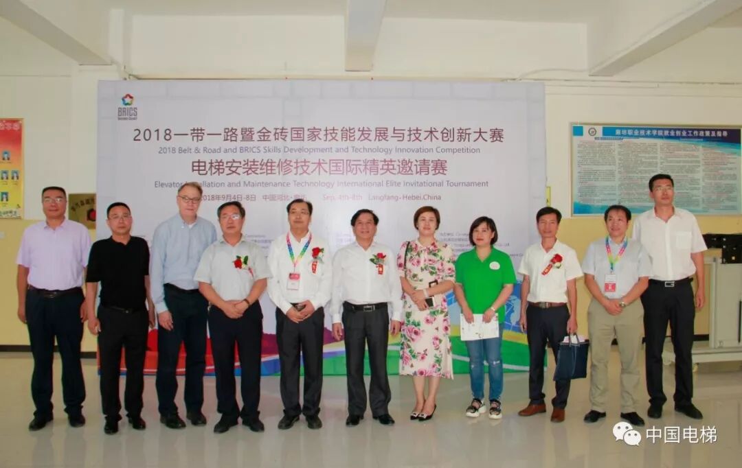 电梯安装维修技术国际精英邀请赛是本次闭幕赛中的重要赛项之一,由金砖国家工商理事会技能发展工作组联合中国建筑科学研究院有限公司建筑机械化研究分院、北京嘉克新兴科技有限公司承办,并由《中国电梯》杂志社以及多家电梯相关企业协办,目的是为促进金砖国家技能发展和技术交流,落实金砖五国共同签署的有关人才发展合作备忘录的相关精神,搭建一带一路暨金砖国家技能发展和技术创新的国际合作平台,希望通过金砖选手同台竞技广泛开展交流合作,共同推动电梯安装维修水平的提升。经过竞赛报名和层层选拔,最终确定来自国内19家单位的36名技能高手参加最后的比拼,同时还邀请了来自南非、俄罗斯等国家的近50名国际选手观摩比赛。