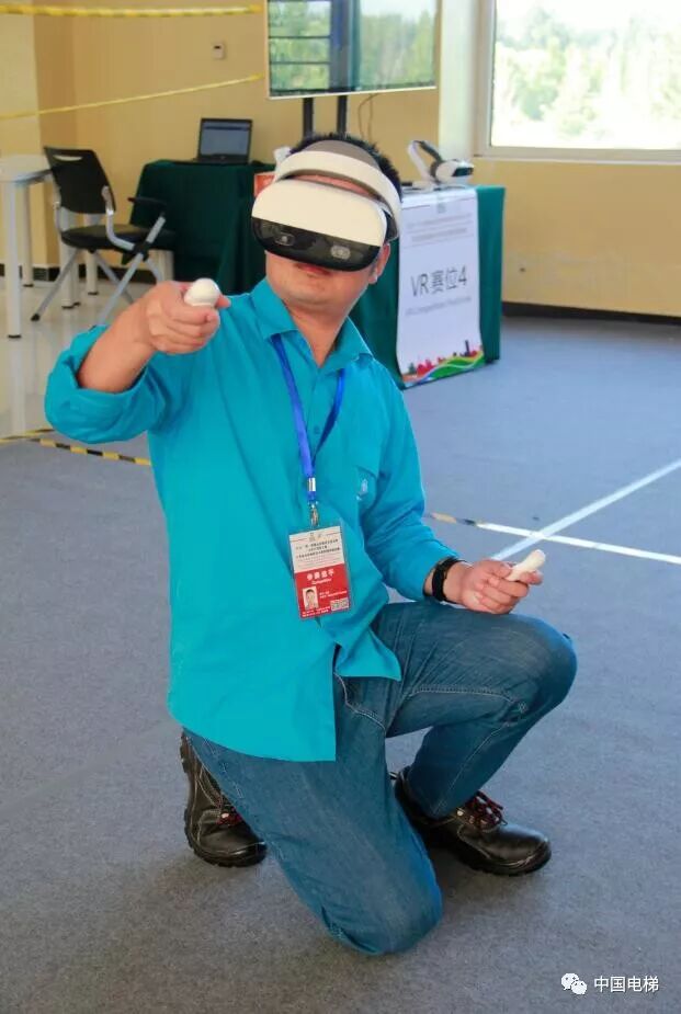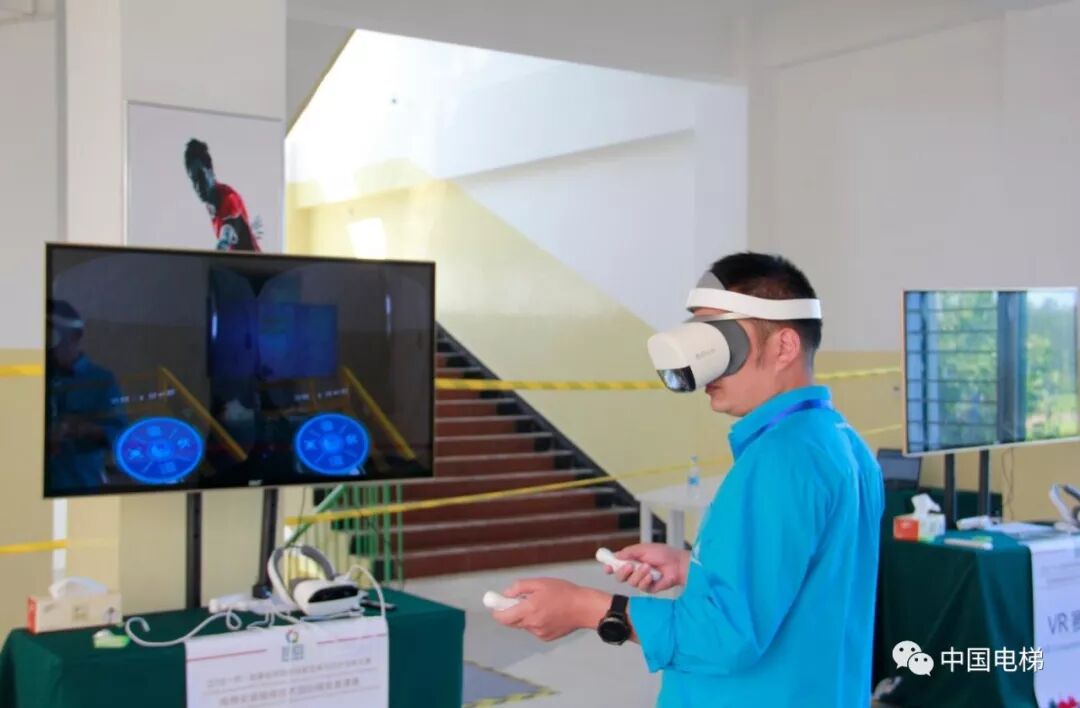 电梯安装维修技术国际精英邀请赛竞赛项目分为实操和VR 两个项目,计分比例为实操项目占总成绩的80%,VR项目占总成绩的20%。实操项目要求选手在规定的时间内在电梯台架和模拟设备上完成故障查找及排除、部件安装与校验等操作,由裁判员现场评分;VR项目要求选手佩戴VR眼镜,通过操纵无线手柄,在虚拟现实场景中完成更换钢丝绳的操作,由系统自动评分。