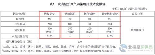 现有燃油、燃气和其他燃料锅炉(即2016年12月31日前建成投产或通过环评审批的),在2020年1月1日起前,不分控制区执行下表1。2020年1月1日起,按所在控制区执行下表2,即核心区颗粒物、二氧化硫、氮氧化物分别按5、35、50mg/m3,重点区颗粒物、二氧化硫、氮氧化物分别按10、50、100mg/m3。